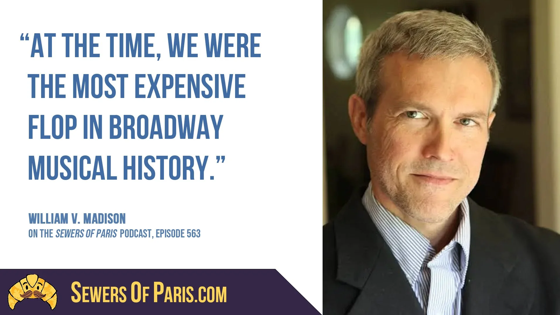 The day this episode comes out, March 26 2026, is the 115th birthday of renowned playwright Tennessee Williams. And to mark the occasion, we’re heading into the Sewers archives to hear my 2020 interview with writer William V. Madison, whose career was inspired in part by a moving experience in college involving a Streetcar Named Desire. That brought William to a series of adventurous jobs, from working on Broadway shows to producing the news alongside Dan Rather, singing to Angela Lansbury, earning a nickname from Fidel Castro, and writing a biography of Madeline Kahn.